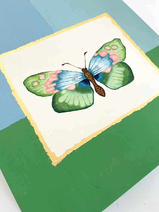 Butterfly in Blue and Green | Oil on Wood Panel