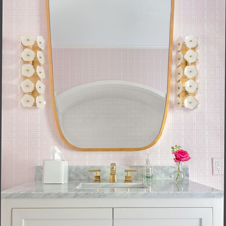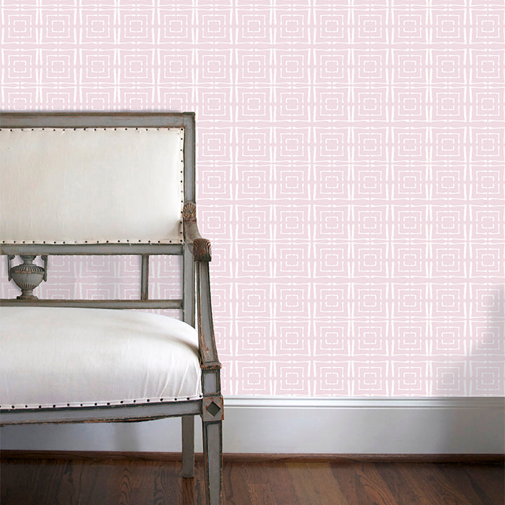 Ann created Centered using an eyedropper. It is her version of a modern-day Greek key pattern. This transitional pattern is perfect for any space - even the ceiling. This design is available in blue, stone grey, and slate blue.