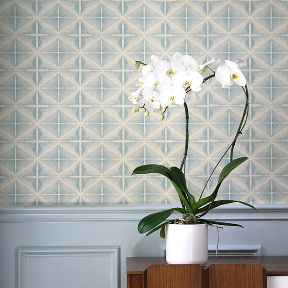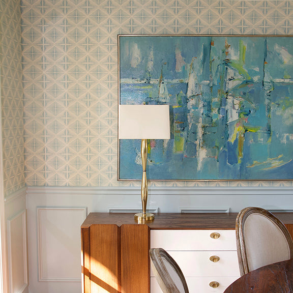 Inspired by a family vacation to Berlin, Germany, this design is geometric and versatile. Placid is available in heavyweight non-woven vellum, grasscloth, and metallic.