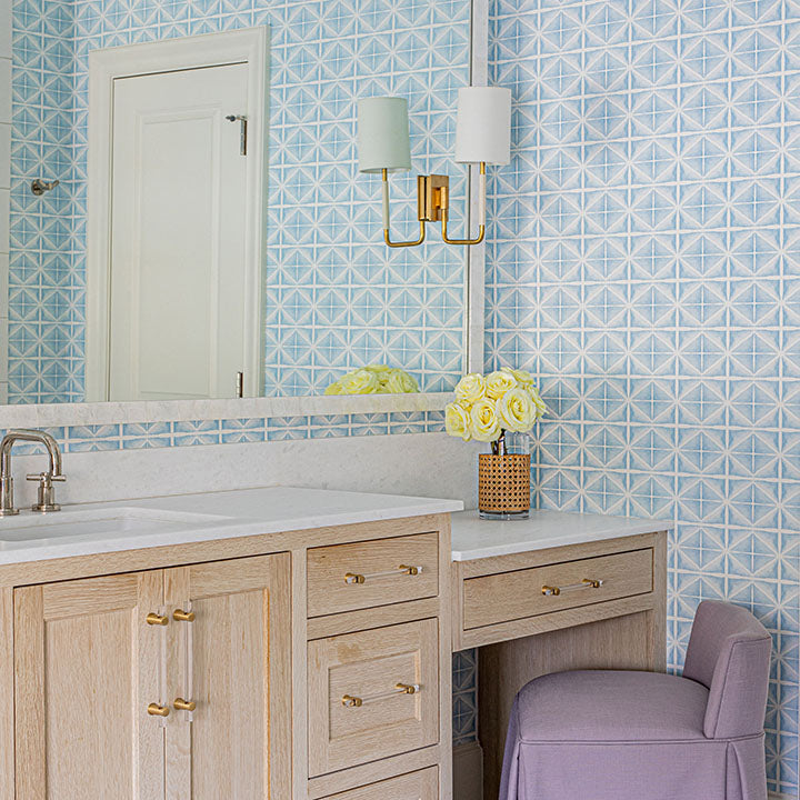 Inspired by a family vacation to Berlin, Germany, this design is geometric and versatile. Placid is available in heavyweight non-woven vellum, grasscloth, and metallic.