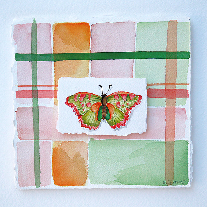 Hand painted watercolor butterfly painting on heavyweight cold press watercolor paper. Mounted on foam board for extra depth. Unframed.